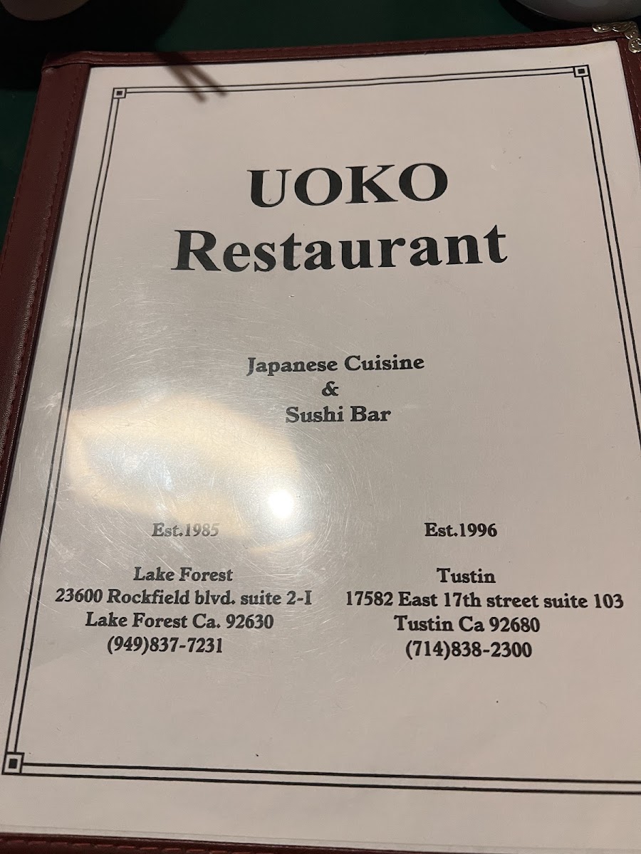 Welcome to Uoko Japanese Cuisine, a hidden gem located in Lake Forest, CA. This sushi bar offers a traditional Japanese dining experience with a menu that includes fresh and delicious sushi options.